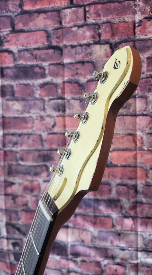 GG stepped headstock, hipshot tuners, nitro lacquer